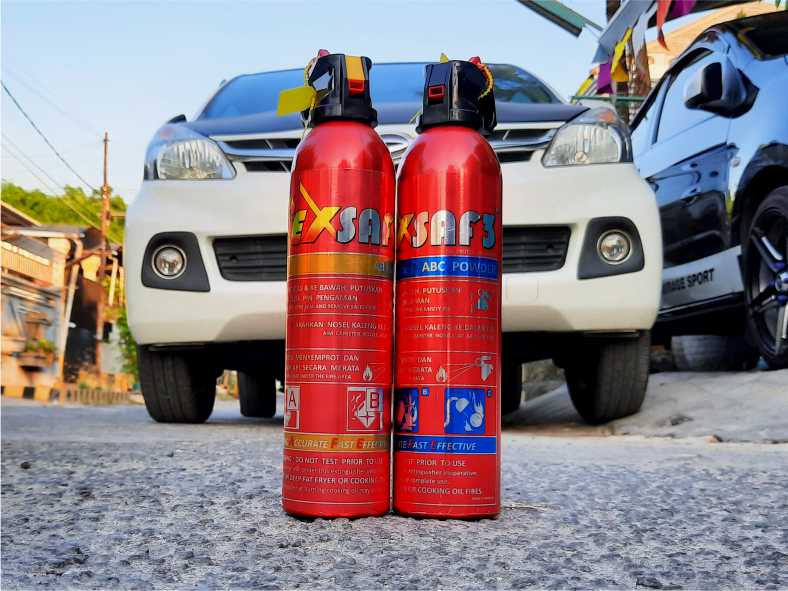 CAR EX-SAFE : ABC DRY POWDER adalah kaleng pemadam sekali pakai untuk tingkat bahaya kebakaran ringan dan hanya sekali pakai.